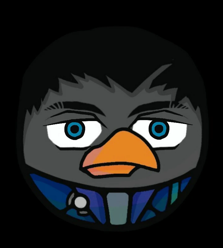 Jest średniej wielkości gawronem o kształcie kuli. Jego piórka są czarne, a jego oczy mają kolor niebieski. Ma też starannie zaczesane do tyłu piórka na głowie i mundur policyjny.